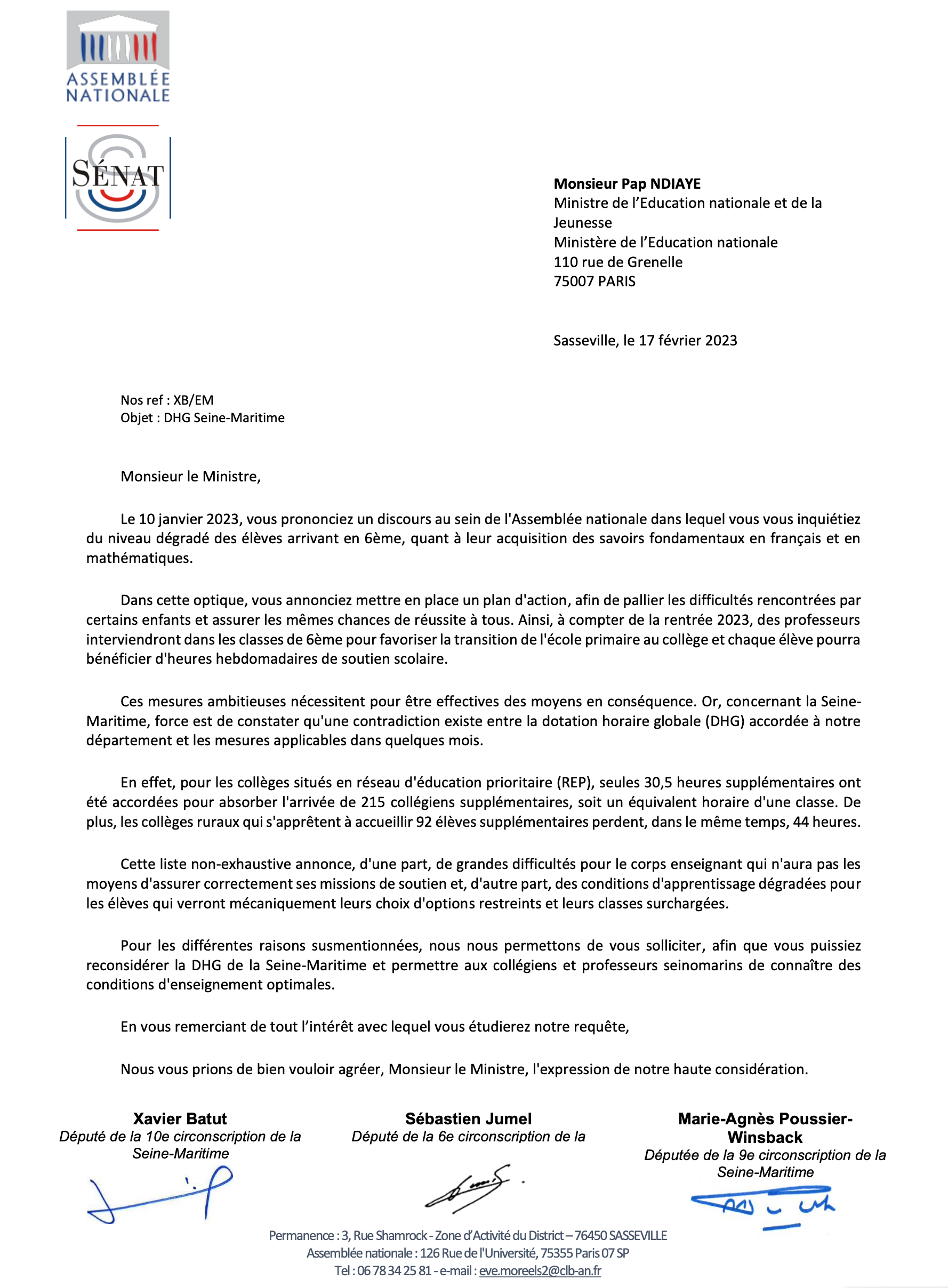 Des moyens en baisse dans les collèges : nous demandons au Ministre de revoir sa copie (27-02-2023)