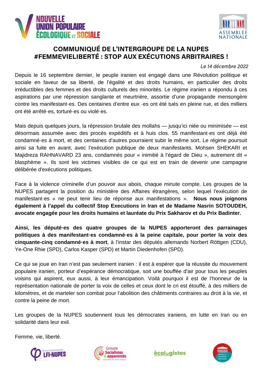Mettre fin aux internements et aux exécutions arbitraires en Iran (15-12-2022)