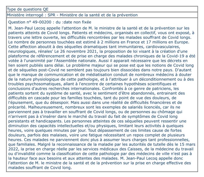 Malades souffrant de COVID longs : j’interpelle le Ministre (15-12-2022)