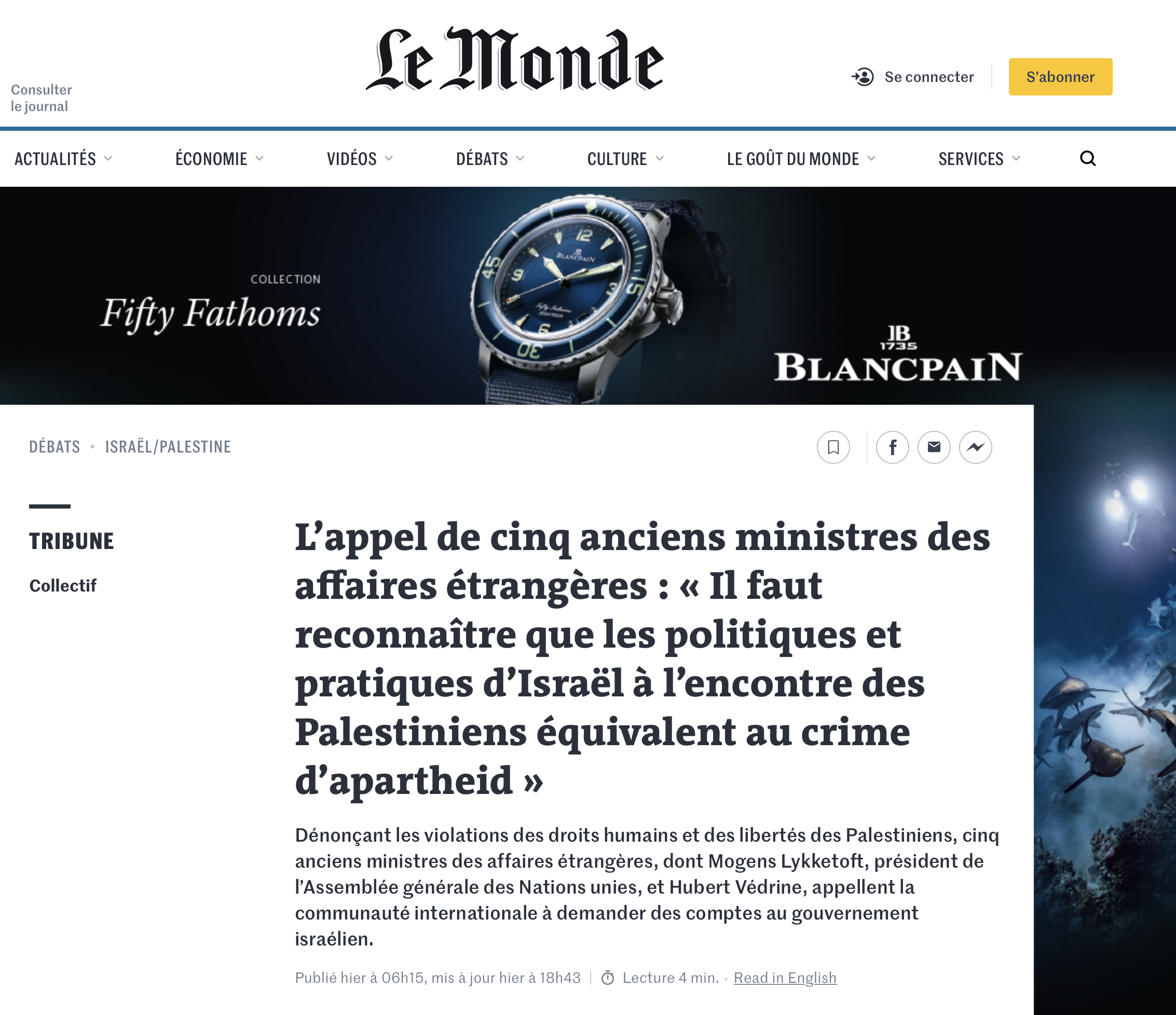 Combattre la politique d’apartheid menée à l’encontre des Palestiniens (27-10-2022)
