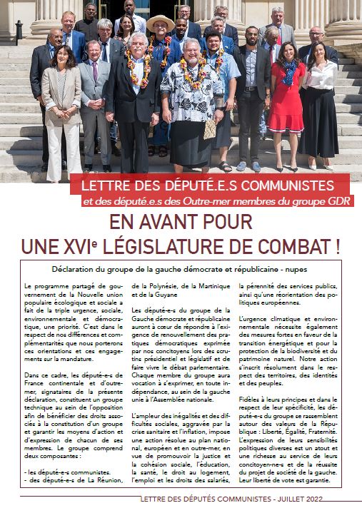 1ère lettre d’information des députés du Groupe de la Gauche Démocrate et Républicaine (13-07-2022)