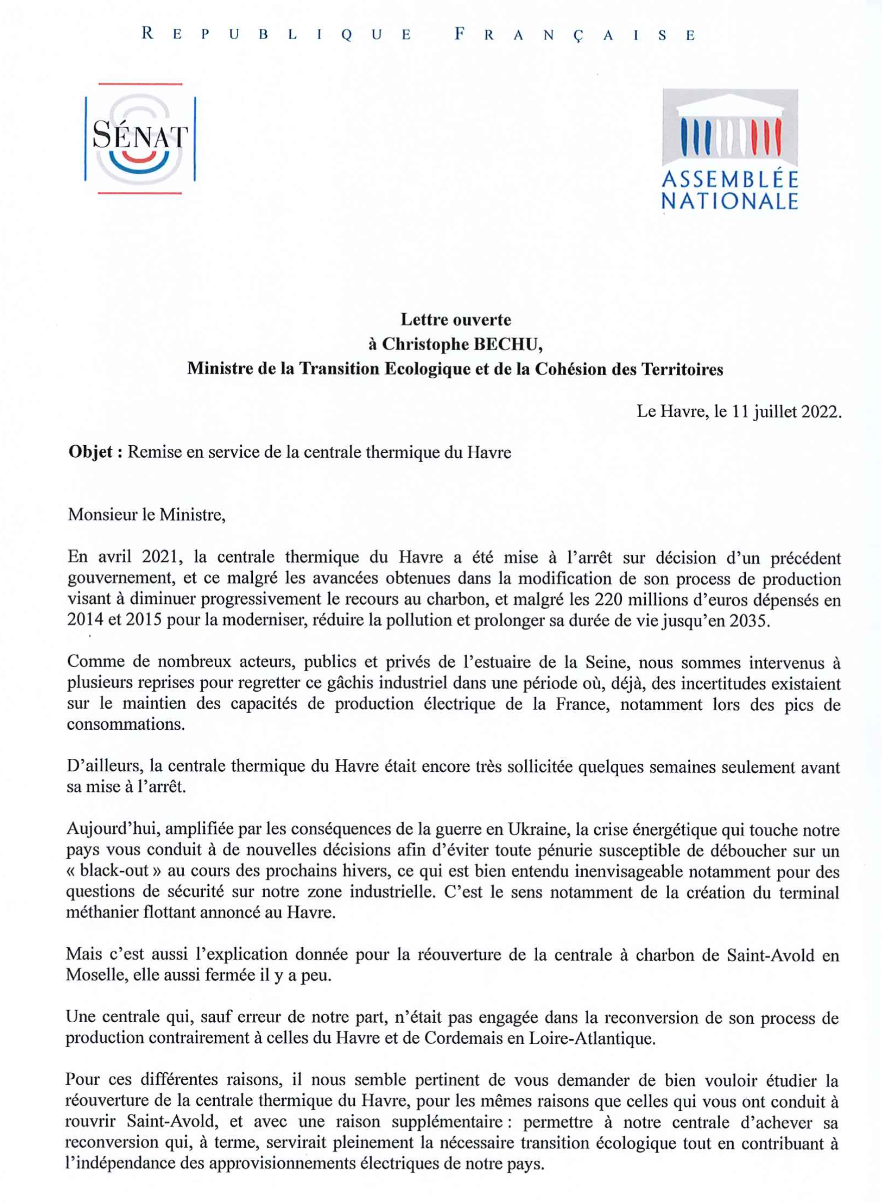 Crise énergétique : Nous demandons la remise en service de la centrale thermique du Havre (12-07-2022)
