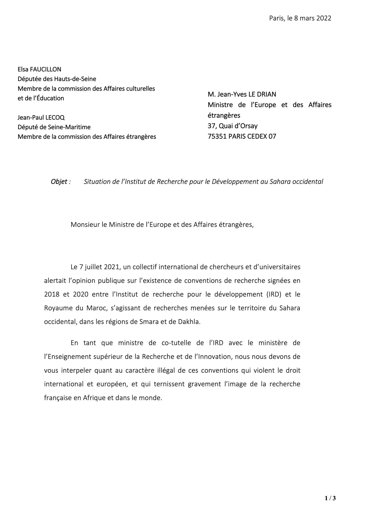 Un institut de recherche français en infraction avec le droit international (10-03-2022)