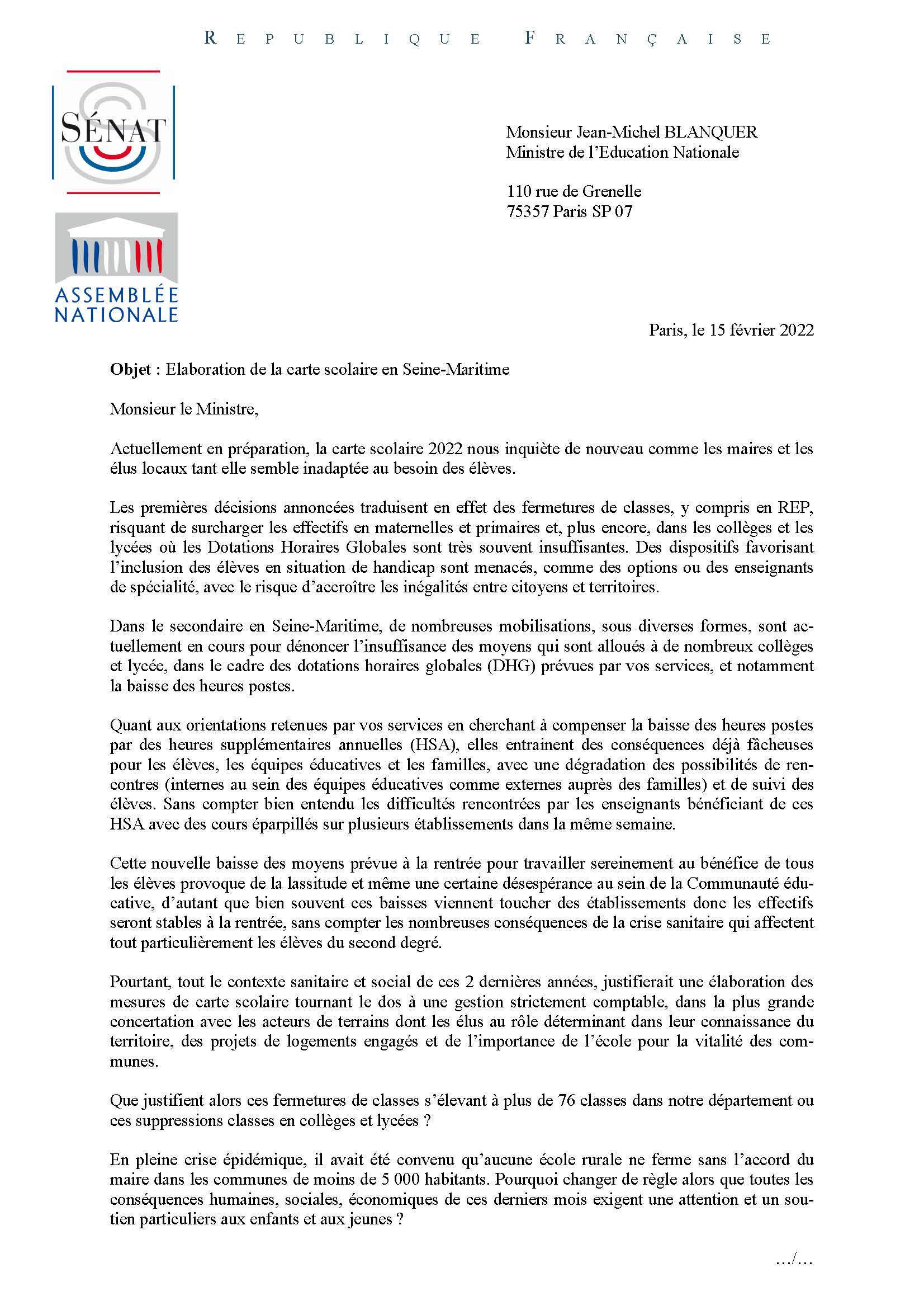 15 février - Actuellement en préparation, la carte scolaire de la rentrée 2022 inquiète de (…)