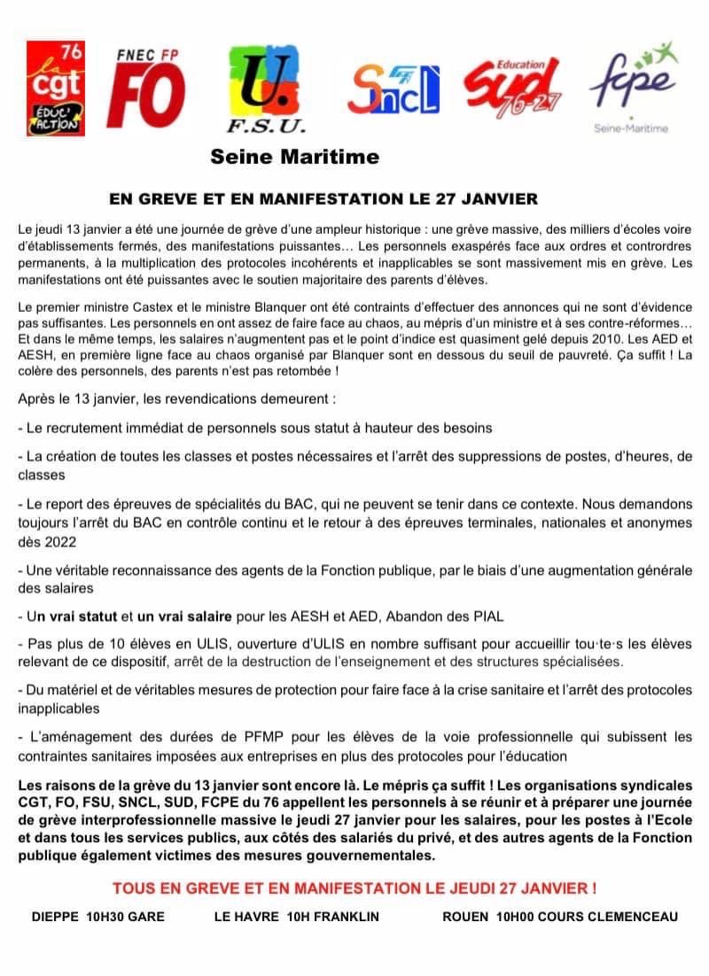 Nouvelle journée nationale de mobilisation pour la justice sociale (27-01-2022)