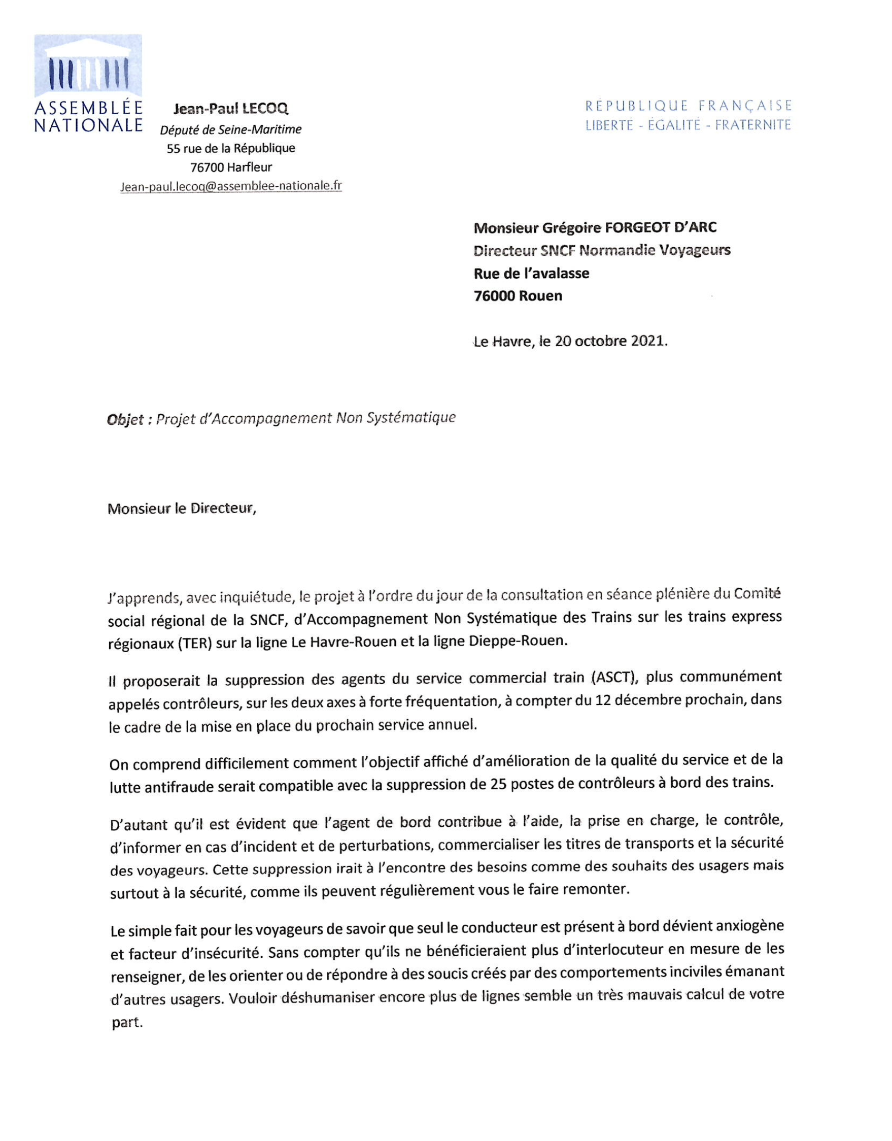 La SNCF veut-elle inventer le "conducteur multi-tâches" ? Je questionne et rappelle l’importance de la présence des agents à bord des trains (18-11-2021)