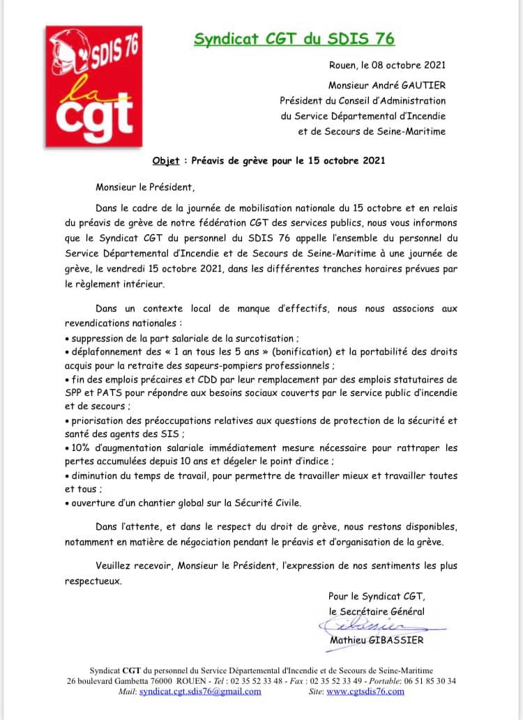 Soutien aux sapeurs-pompiers en grève aujourd’hui (15-10-2021)