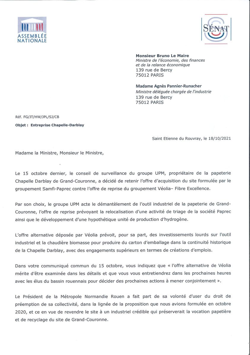 Chapelle Darblay : le Gouvernement doit prendre des initiatives ! (18-10-2021)