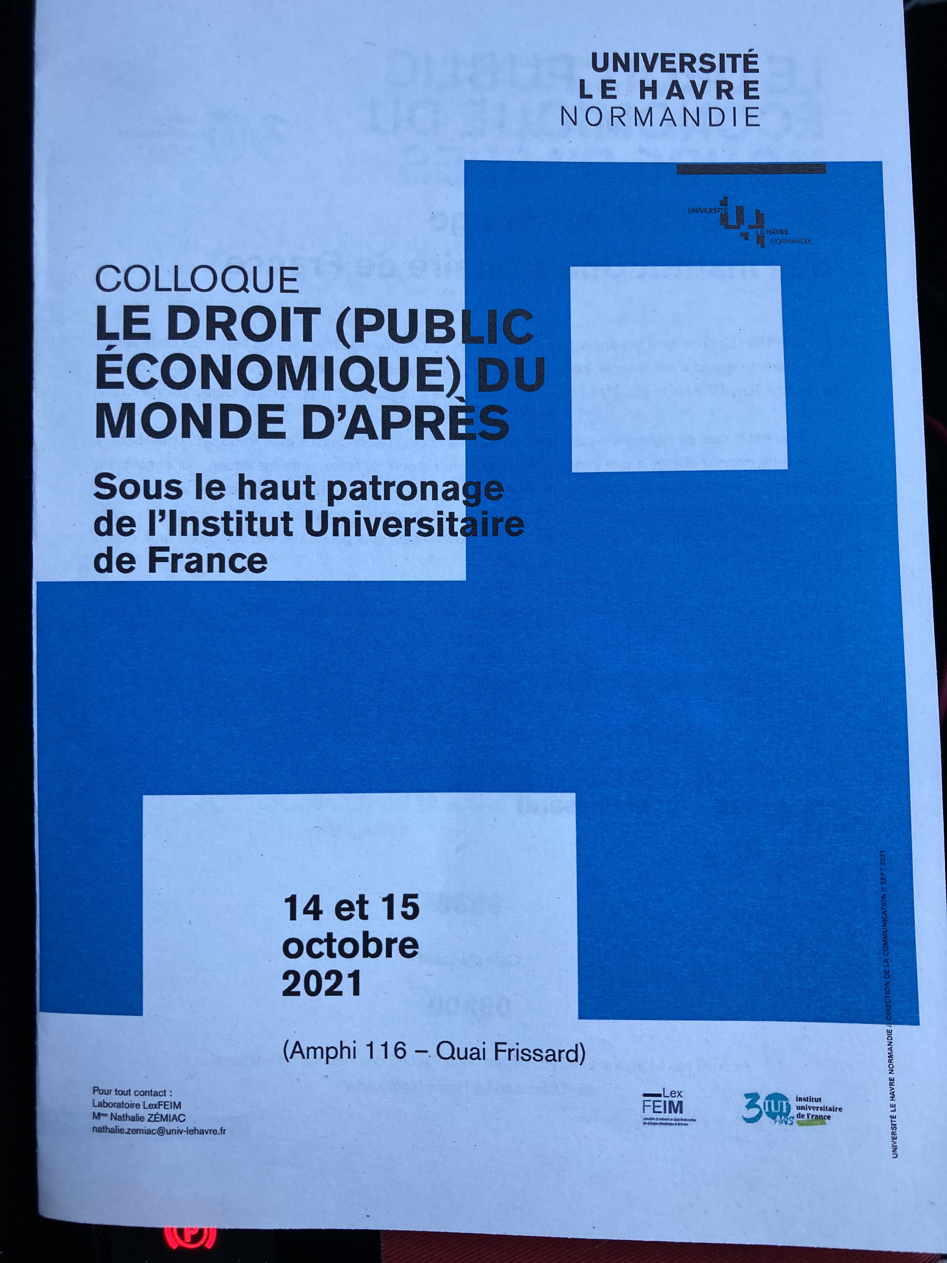 Je participe à l’Université au colloque « Le droit (public économique) du monde d’après » (14-10-2021)