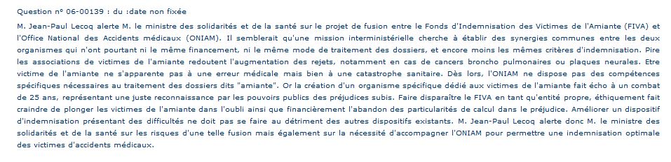 Victimes de l’amiante : non à la fusion de la FIVA et de l’ONIAM (01-10-2021)