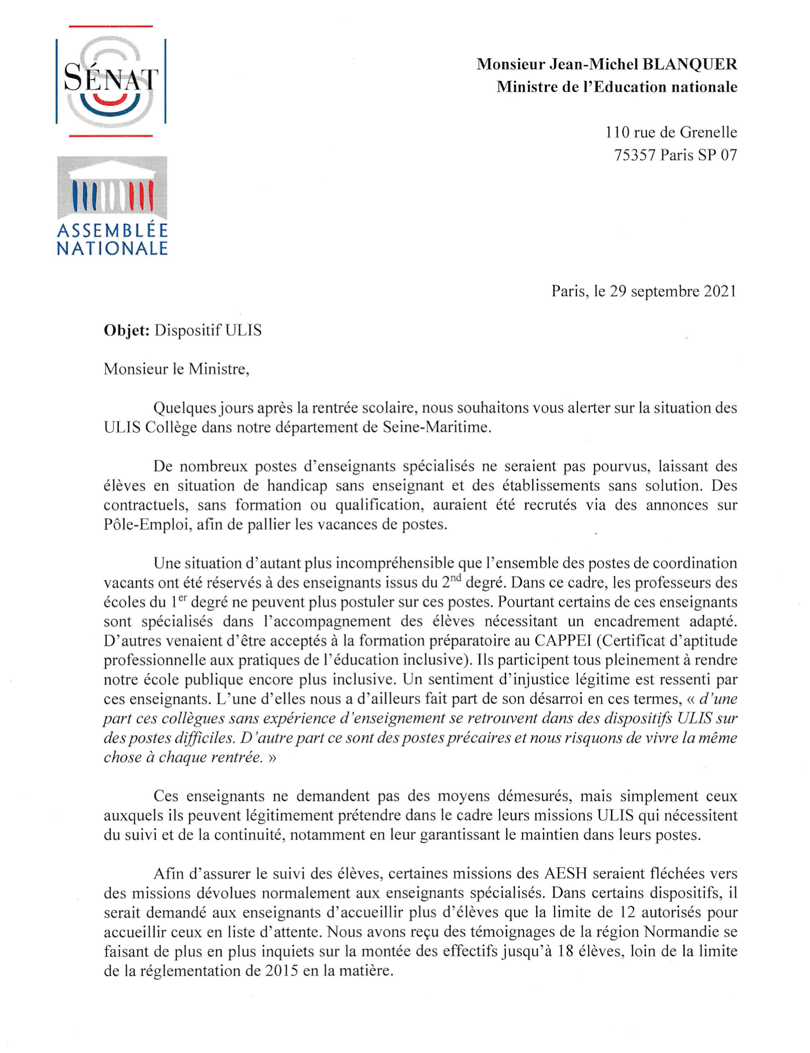 Dispositif ULIS en faveur de l’inclusion scolaire : les moyens ne suivent pas (30-09-2021)