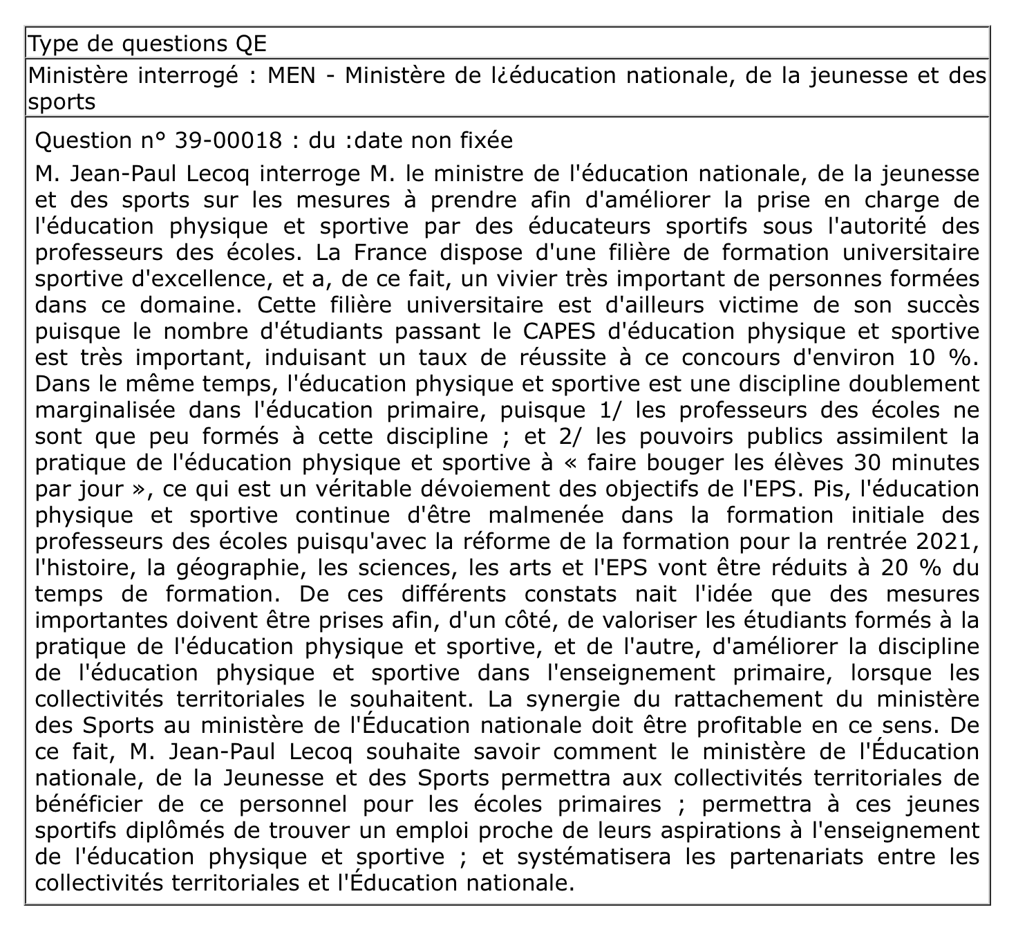 Améliorer la prise en charge de l’éducation physique et sportive par des éducateurs sportifs sous l’autorité des professeurs des écoles (20-09-2021)