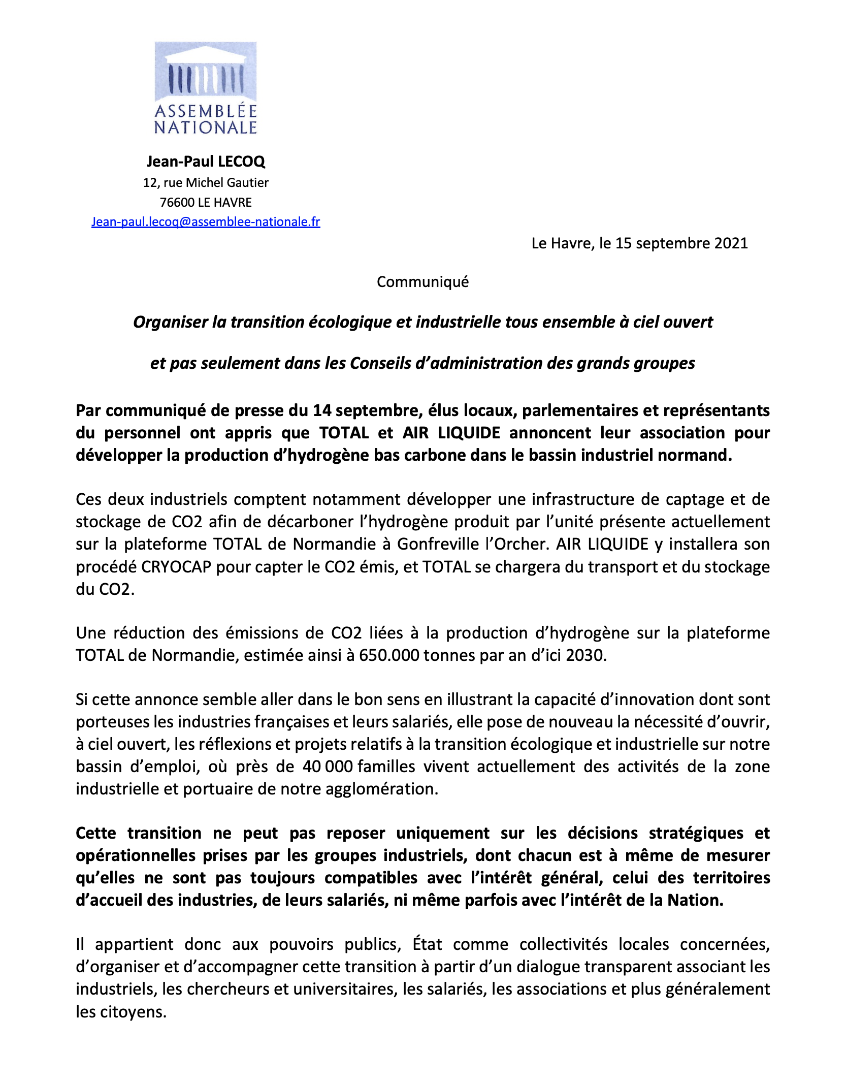 Organisons la transition écologique et industrielle tous ensemble à ciel ouvert (16-09-2021)