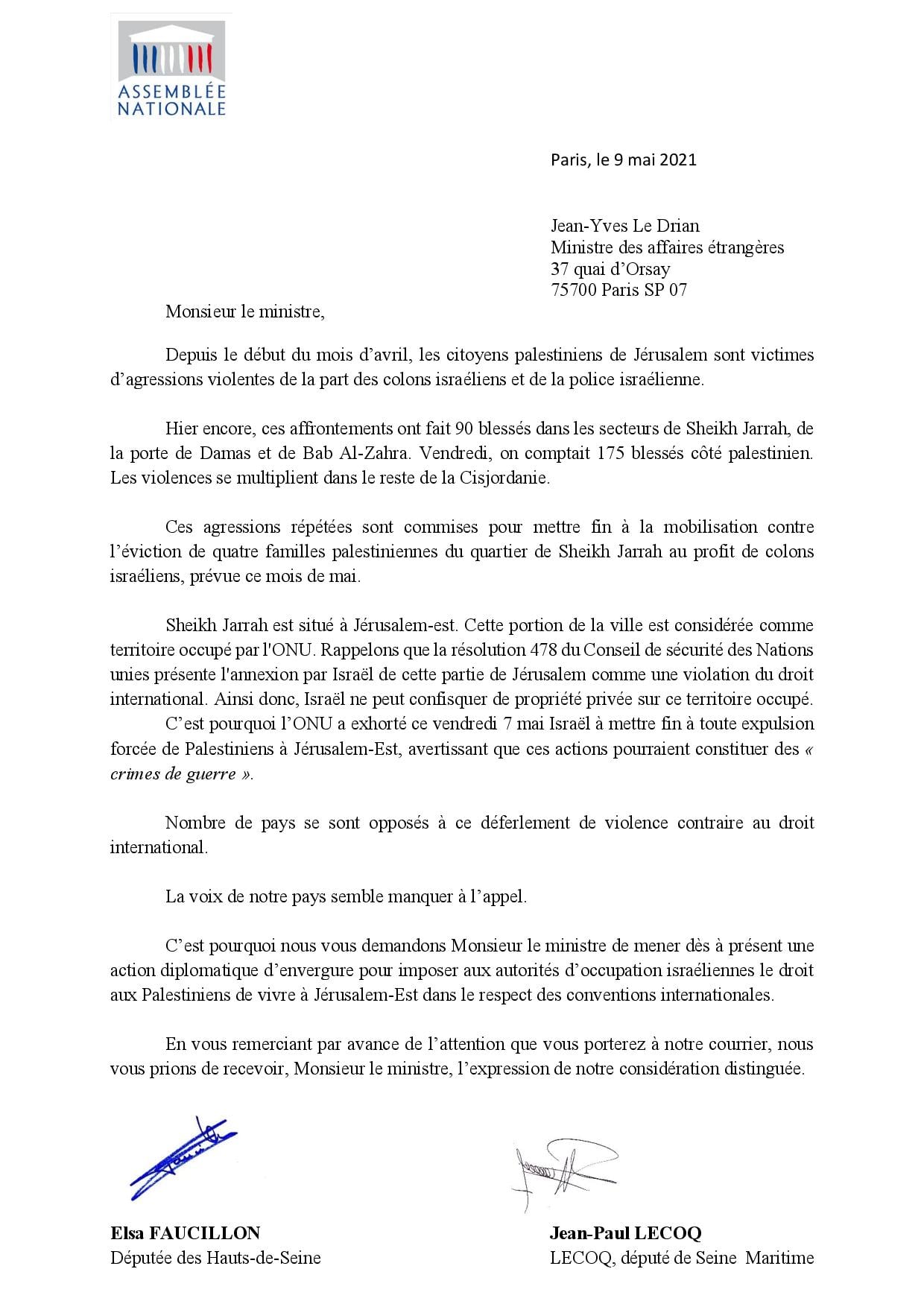 10 mai - Face à la multiplication des violences en Cisjordanie, avec les autres députés (…)