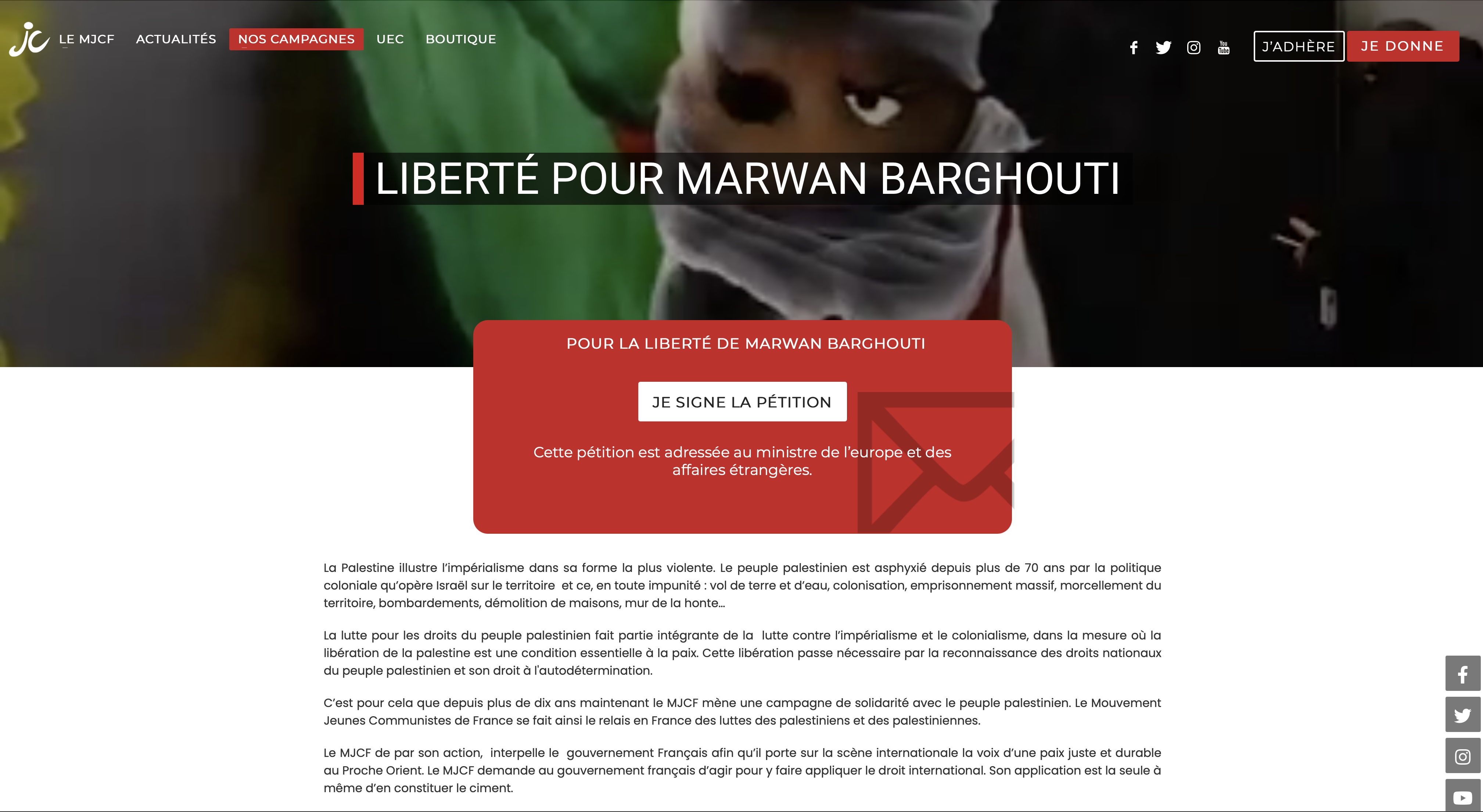 Libérez Marwan Barghouti et les 4.500 autres prisonniers politiques palestiniens ! (12-04-2021)